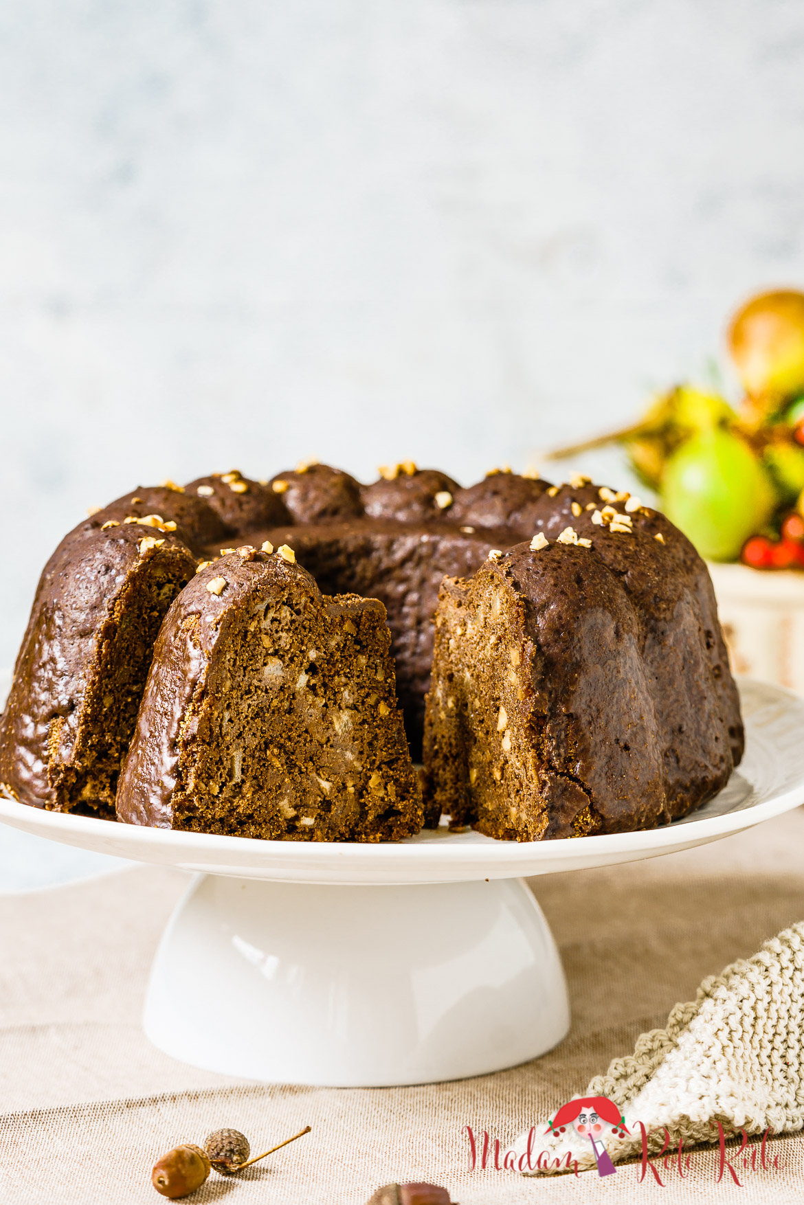 Birnen-Dinkelvollkorn-Gugelhupf mit Schokolade und Mandeln