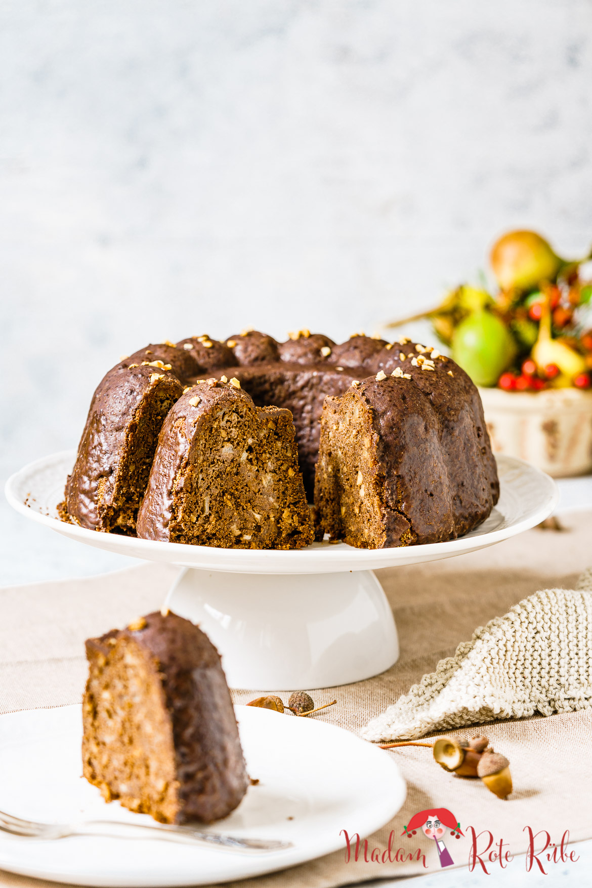 Madam Rote Rübe - Birnen-Dinkelvollkorn-Gugelhupf mit Schokolade und Mandeln