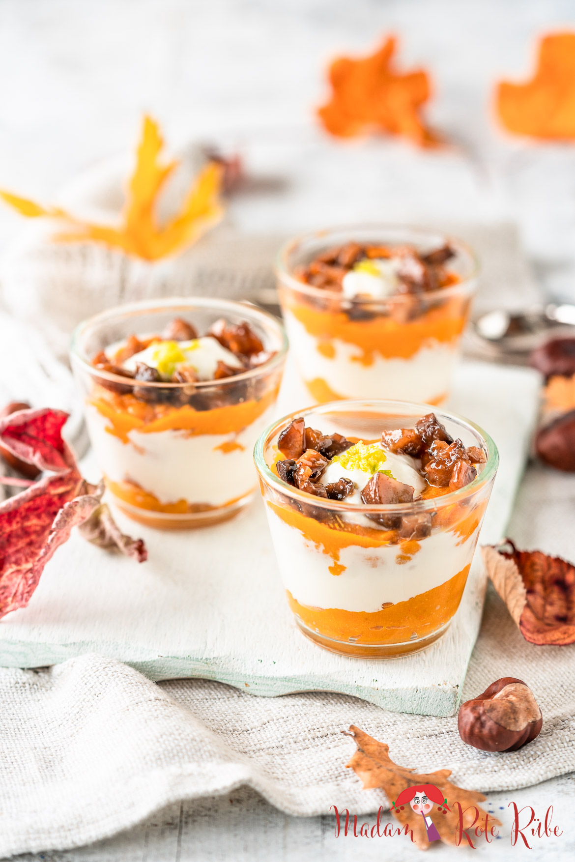 Madam Rote Rübe - Kürbis-Apfel-Maronen-Schichtdessert mit karamellisierten Maronen