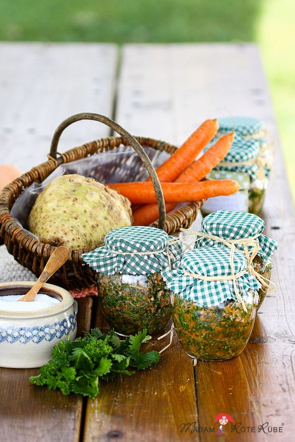 Eingesalzenes Suppengrün für Gemüsebrühe
