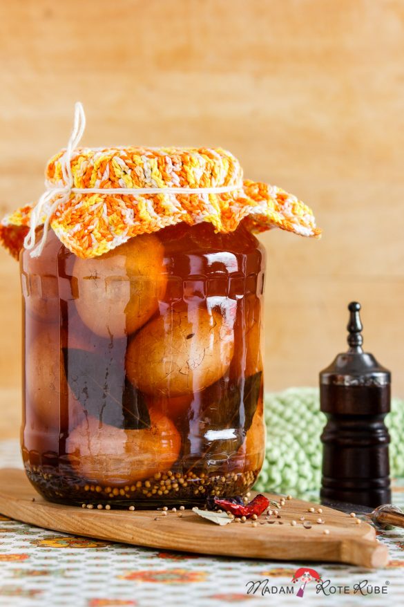 Würzige Soleier in einem Honig-Senf-Sud